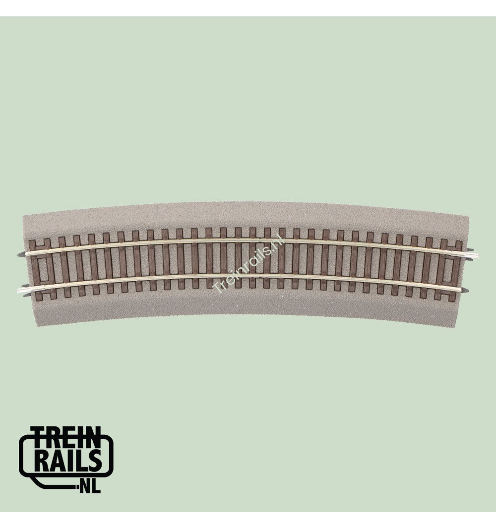 Omschrijving: Gebogen Rails R9 met bedding, Radius 826,4 mm, 15°.