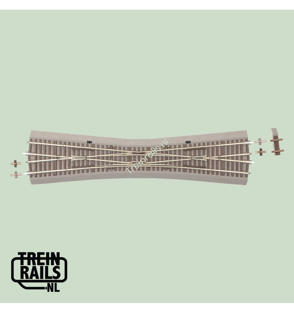 Omschrijving: Halve Engelse wissel EKW10 zonder aandrijving, met bedding, lengte 345 mm, Radius 959 mm, kruisingshoek 10°. Inclusief twee opvulstukken D2 en één opvulstuk D8.